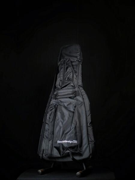 Elektromos gitár puhatok Cordura 600 Denier anyagból, fekete szín , 3 mm szivacs Szakadásbiztos és vízálló 3 mm-es habszivacs párnázat Dekoratív varrás Puha fogantyú, extra fogantyú elől Szöszmentes belső, extra védelem a kulcsoknak Erős varrású, állítható vállpánt Nagy kottatartó zseb