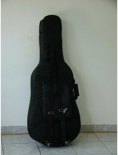 A cselló tok 2 cm-es szivaccsal. Hátán kottatartó zsebelején vonótartó zseb van...