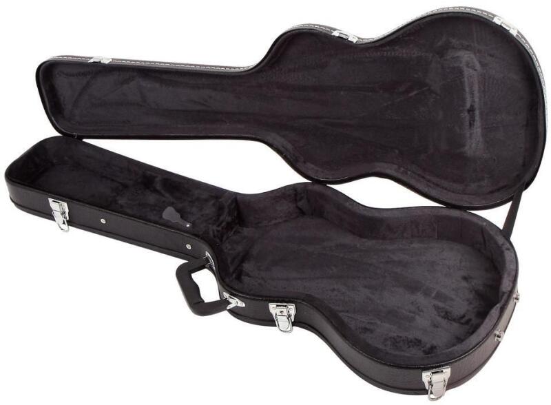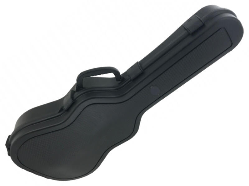 FX F560140 Les Paul Gitártok fa koffer műbőr bevonattal lapos tető, stabil 5 mm-es fa mag 15 mm vastag belső bélés - fekete plüss 3 krómozott zár, 2 zsanéros csavarozott gumilábak, stabil műanyag fogantyú matt fekete, szemcsés műbőrbevonat formatok