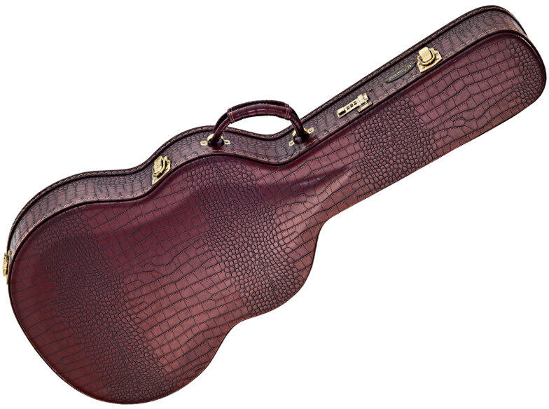 Rendkívüli luxus hangszertok, modern, barna krokó stílusú vinil kivitelben. Ívelt tető, 15 mm-es párnázás - "kávé zúzott" bársony borítja, beépített nedvességmérő, ...