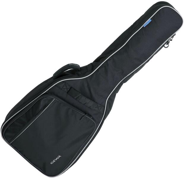 GEWA ECONOMY 12 LINE 212200 Western Gitár Tok Kitűnő minőségű Cordura 600 Denier Tépésbiztos, vízálló Minden hordszíj és fogantyú duplán megerősítve és alátéttel ellátva 12 mm High-Density habszivacs párnázat Extra erősítés a fej és a test körül Szöszmentes belső bélés, antracit Megerősített részek a fenél és a hídnál Vastagon párnázott, komfortos foganty