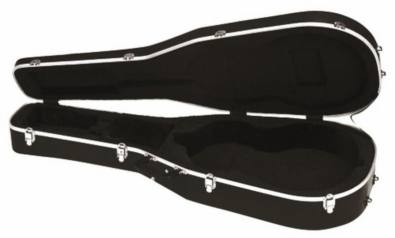 GEWA 523321 ABS Premium Klasszikus Gitártok amerikai kivitel, magas terhelhetőségű ABS-héj körben aluprofil, krómozott csatos zárak fémlábak, ütéscsillapító alátéttel fekete plüss bélés minden fém alkatrész erősen szegecselve szegecselt logo-lemez Súly: 4.15 kg