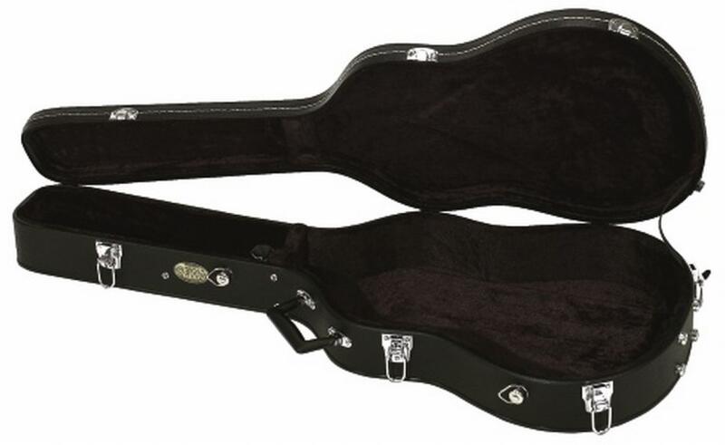GEWA 523270 Arched Top Klasszikus Gitártok faból készült váz, stabil, egyenes fedlap, körbe levarrt krómozott zárak, 3 tetőzsanér csavarozott gumilábak stabil műanyag-fogantyú matt fekete, barkás műbőrbevonat, tartozékrekesz tetővel belső kialakítás: fekete bársony akasztó hevederhez (heveder nélkül) sárgaréz lemez GEWA-logóval Súly: 4.35 kg