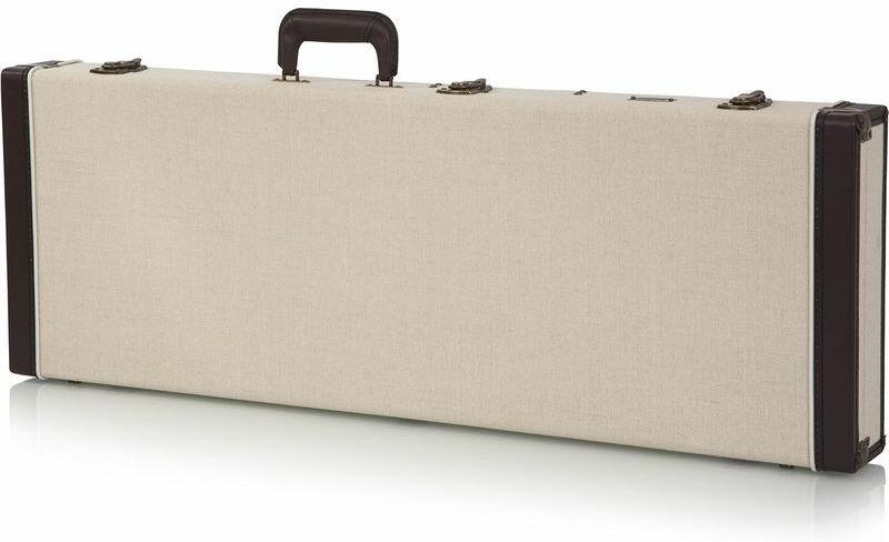 Deluxe fa keménytok elektromos gitárhoz, elegáns vintage külső, bézs A nagy teherbírású rétegelt lemezpanelek és a hagyományos kézműves kivitelezés tartós külső burkolatot alkotnak. Az antik sárgaréz hardver, záró retesszel Vintage hatású külső, kávé színű díszítő elemekkel A királykék bársony bélés biztonságban tartja a hangszert A tágas, fedeles belső tá