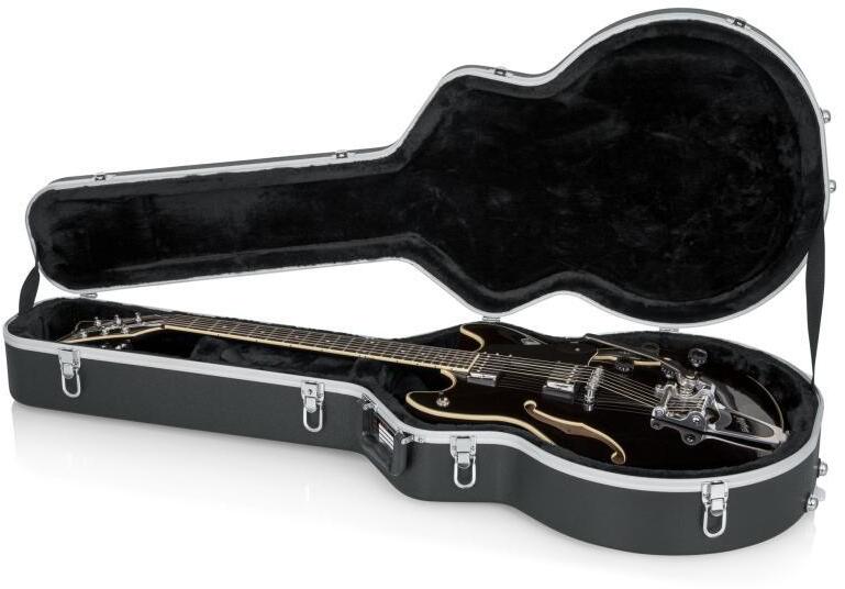 Deluxe formázott tok félüreges gitárokhoz, mint például a Gibson 335? Ez a deluxe formázott tok kifejezetten a félüreges gitárokhoz, például a Gibson 335?-hez készült. Kiváló védelmet nyújt a kemény, ütésálló ABS műanyagból készült külsõ héjával és a plüss bélésű belsõ részével, amely megóvja hangszerét a karcolásoktól és ütõdésektõl. A tok tágas be