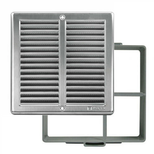 Négyzetrács Haco NVM 150x150 rozsdamentes A rácsok kisebb helységek pl. : toalettek, fürdőszobák, éléskamrák, lakókocsik, stb. szellőztetésére alkalmasak. Keret nélkül a rács felhasznál-ható magas hőmérsékletű szerkezeteknél, pl. kandallóknál. A rácsok hátsó oldala fémből készült rovarhálóval van ellátva. Szín:rozsdamentes rács szürke kerettel Típus Méret a