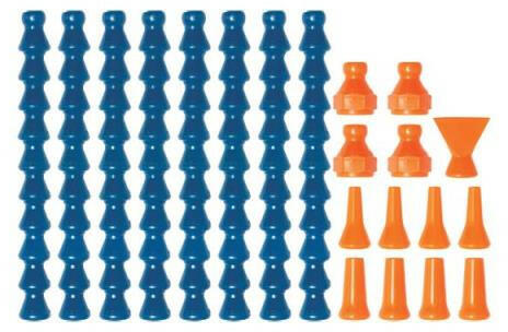 LOC-LINE 21 db-s hűtőcső készlet, 1/4"-os szerelvényekhez Készlet tartalma: 8 db szegmenscső 4-4 db körszórófej (3 és 6 mm) 4 db belső (5/8"-os) menetes csatlakozó 25 mm-es lapos szórófej