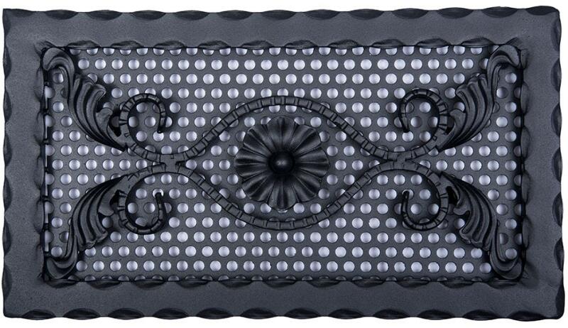 Kovácsoltvas kandalló szellőzőrács Méret: 390 x 220 mm Beépítési méret: 350 x 180 mm * (falban kivágandó méret!) Szín: fekete Kézműves termék! Hőálló, korróziógátló, strapabíró szinterezett alap kiváló légáteresztéssel
