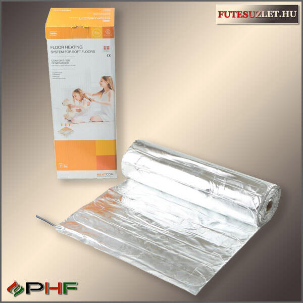 HEATCOM alumat fűtőszőnyeg, 80W/m2 teljesítménnyel A HEATCOM alumat fűtőszőnyeg padlószint emelkedés nélkül kialakítható elektromos padlófűtési rendszer megoldása laminált padló alatt. Ajánlott vezérlés, mely termosztát a hőmérsékletre nagyon kényes laminált padló hőmérsékletét is méri: PADLÓSZENZOROS TERMOSZTÁTOK Heatcom alu fűtőszőnyeg alkalamzása A bel