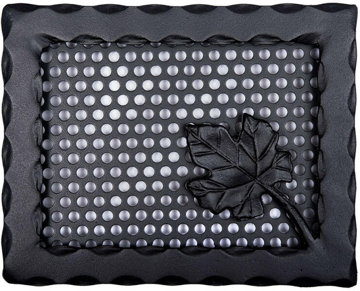 Kovácsoltvas kandalló szellőzőrács Méret: 250 x 200 mm Beépítési méret: 210 x 160 mm * (falban kivágandó méret!) Szín: fekete Csavarozható kivitel Kézműves termék! Hőálló, korróziógátló, strapabíró szinterezett alap kiváló légáteresztéssel
