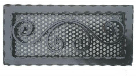 Kovácsoltvas kandalló szellőzőrács Méret: 380 x 180 mm Beépítési méret: 340 x 140 mm * (falban kivágandó méret!) Szín: fekete Kézműves termék! Hőálló, korróziógátló, strapabíró szinterezett alap kiváló légáteresztéssel
