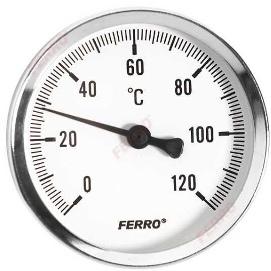 Ferro Hõmérõ Hátsócsatlakozású 0-120 °C hõmérõ hátsó csatlakozású 0-120 °C hátsó csatlakozó 1/2 burkolat: acél karcálló kemény fedõlap tárcsa: porfestett alumíniumm hõmérõtartomány: 0-120 °C számlap külsõ átmérõ Ø63 mm hõmérõ: bimetál spirál méretek: B 64.5mm, C 61.5mm