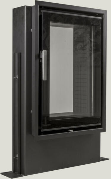 Külső levegő bevezetéses tüzelőajtó, dupla üvegezéssel, vas öntvény, fekete, süllyesztő kerettel A dupla ablaküveg alapfelszereltség minden tűzhelyajtón. Robusztus változat. Állítható magassággal és keret mélységgel 1 db téglalap alakú alsó kivágás