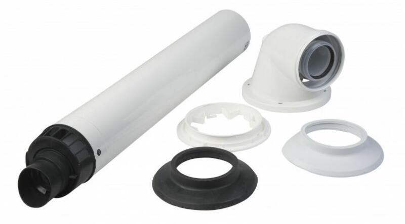 "60/100mm oldalfali kivezetés, indító könyökkel kivezető csővel és takaró idommal"