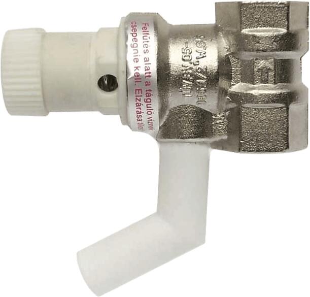 bojler biztonsági és visszacsapó szelep zártrendszerű elektromos bojlerekhez elvezeti a bojler vízfelfűtése közben keletkező túlnyomást beépítése a bojler bemenő hidegvíz ágába történik csatlakozás: 1/2" BB megszólalási nyomás: 6,5 bar (±0,2 bar) zárónyomás: 6,5 bar (-20%) tartozék: 1 db lefúvócső