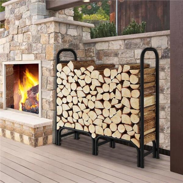 WALDHAUS fatároló védőponyvával. A tűzifára tervezett, kiváló minőségű állvány alkalmas beltéri és kültéri kandallókhoz egyaránt. Fekete elegáns kialakításának köszönhetően nemcsak a fa tárolására praktikus, hanem design-kiegészítőként is szolgál. A WALDHAUS fatároló stabil, karbantartást nem igénylő és esztétikus megoldás a fa tárolására a családi h