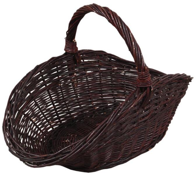 Ovális, sötét fonott anyagból készült fatartó kosár, amely praktikus és esztétikus kiegészítője lehet otthonának. Könnyű, mégis tágas, ideális tűzifa tárolására.