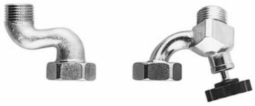 Vízbekötőkészlet W…-1 sorozathoz, vakolat feletti szereléshez, hideg- és melegvíz-csatlakozó ív elzáró szelepekkel.