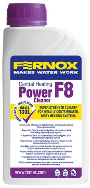 A Fernox Power Cleaner F8 egy pH-semleges, citromsav alapú tisztítószer, mely erősen vízköves és iszapos lerakódásokkal szennyezett fűtésrendszerek tisztítására szolgál. Ideális időszakos karbantartásokhoz és a kazáncsere alkalmával esedékes rendszermosáshoz.