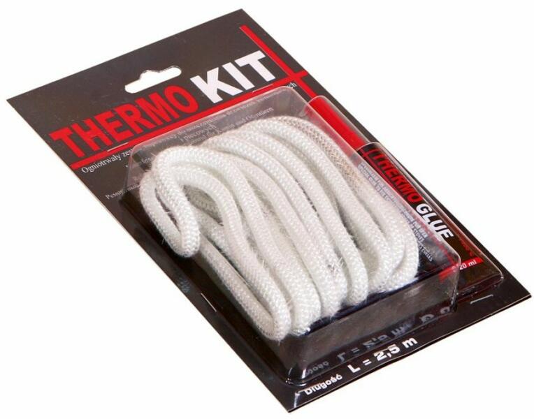 THERMO KIT hőálló tömítő készlet (zsinór + ragasztó) kandallóbetétek ajtajainak tömítésére. Ajtók, tűzterek és diletációs hézagok tömítésére alkalmas hőálló anyag. A tömítéseket hőálló ragasztóval rögzíthetjük. Kötél átmérő: 12 mm Hossza: 2,5 m