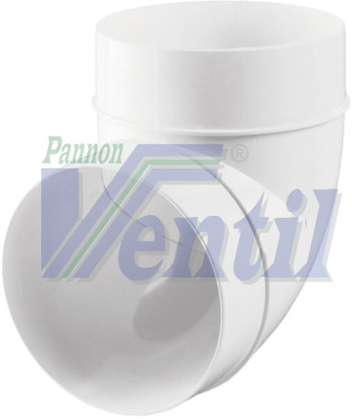Fehér PVC-ből készült, befúváshoz és elszíváshoz használt légtechnikai elem. Műanyag könyök idom, 150 mm körcsatornához, 90 fok Anyag:Műanyag Átmérő [mm]: 150 Forma: Kerek Felépítése: szimmetrikus Működési elv: Könyökidom