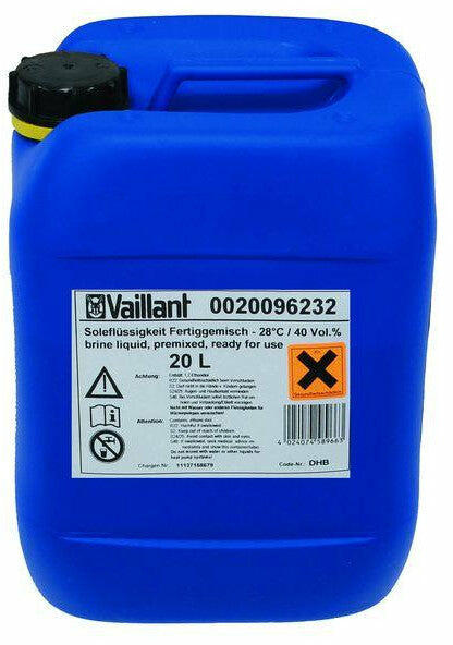 Vaillant készre kevert hőhordozó közeg, 20 literA német Vaillant cég 1904 óta képviselteti magát termékeivel hazánkban. Széles termékpalettájukban megtalálhatjuk gáz- és olajfűtő berendezéseket, kondenzációs kazánokat, pellet-fűtő készülékeket csakúgy mint a megújuló energiát hasznosító berendezéseket. Készre kevert sóoldatos hőhordozó közeg Vaillant flexoTh