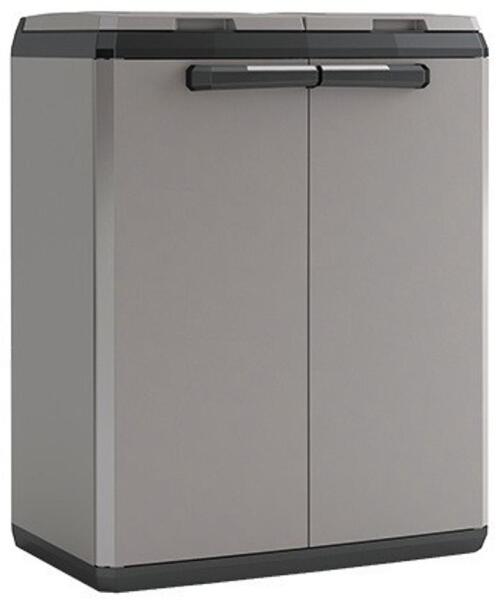 KETER SPLIT CABINET BASIC műanyag szelektív hulladéktároló - szürke A műanyagból készült szelektív hulladéktároló szekrény elülső ajtókkal van felszerelve a hulladék könnyű kezelése érdekében. A termék könnyen karbantartható. Paraméterek: teljes súly 6 kg anyag műanyag szín szürke termék magassága 85 cm termék szélessége 68 cm termék hossza 39 cm csomagolóany