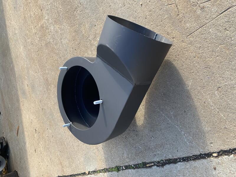 S-1800 Kazán elszivó ventilátor házCsatlakozó méret : 200 mm füstcső bekőtéséhez A ház ventilátor méretei S-1800 elszivó ventilátor csatlakoztatásához kerültek kialakitásra! A ventilátor háza 1,5 mm vastagságú lemezből gyártott hegesztett konstrukció. A bemeneti torok az elszívó ventilátor kazánra történő felszerelésére szolgál, a kimeneti torok a kémény bek