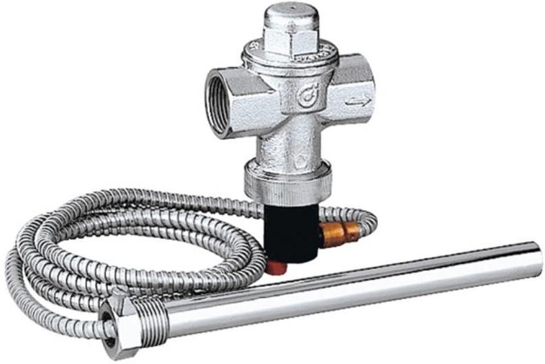 CALEFFI termikus biztonsági szelep 3/4" vegyes tüzelésű kazánokhoz. kétszeres biztonsági érzékelővel vegyestüzelésű kazánokhoz maximum 10 bar üzemi nyomás hőmérséklet tartomány 5 - 110°C gyári beállítás 95°C védőcső DN15 (") x 197 mm kapilláris hossz 1,3 m