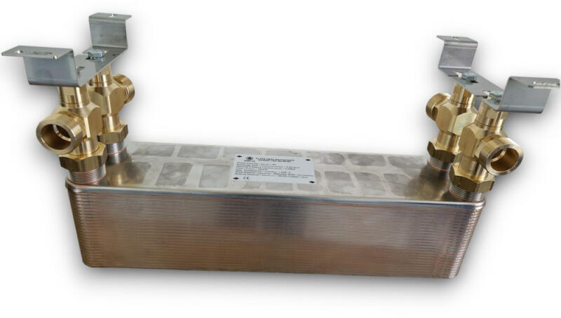Hőcserélő tartókonzollal Hőcserélő maximális teljesítménye: 660kW Névleges teljesítmény: 120-230kW Lemezek száma: 60 Csatlakozás: 4x 1 1/4 külső menet Névleges áramlás: 22 m³/h Hőcserélő felőlet: 3,600 m2 Üzemi nyomás: 30 bar Próba nyomás: 45-60 bar Min. hőmérséklet: -190°C Max. hőmérséklet: +225°C Súly: 17,5 kg Lemez anyaga: rozsdamentes acél 304 vagy 316 Le