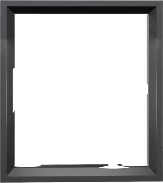 Modern acél díszkeret a NADIA 8 kandallóbetéthez, az ajtó megfordítása után jobbra nyíló ajtóval (jobb oldalon zsanérok).