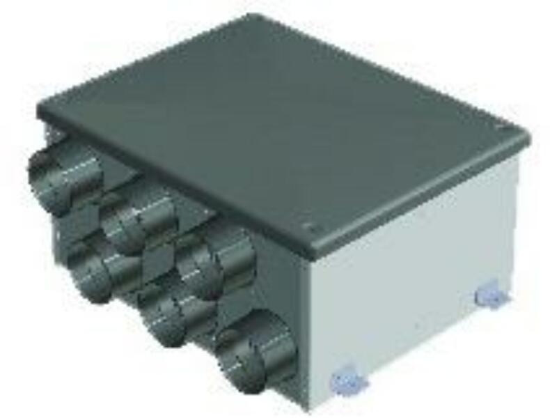 Aerauliqa PLENUM ISO DN125mm 6XDN75/63mm POS. Átmérő: 125-63/75 mm Tulajdonságok: hancsillapított 6-os osztóelem egyszerűen telepíthető Hangcsillapított kivitelű osztóelem hővisszanyerős szellőztető készülékkel szellőztetett lakások / irodák légtechnikai csőrendszerének kialakításához. A hővisszanyerő készülékkel való csatlakozás 125 mm-es átmérőjű légtech