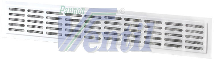 Szellőző rács. Hossz: 475 mm Szélesség: 80 mm. A bútor szellőztetéséhez használható, a kivágott nyílás eltakarására alkalmas fém szellőzőrács. Anyag: Fém Átmérő [mm]: 475x80 Forma: szögletes