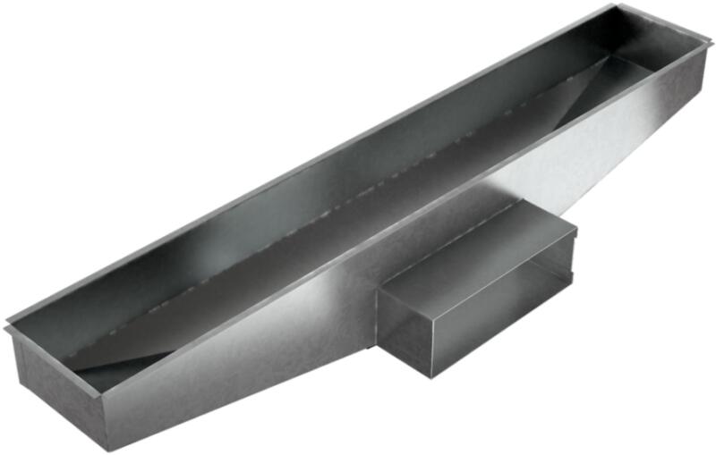 Adapter egy 15x5 cm-es csatornából egy 9x60 cm-es rácsra. A kandalló meleglevegő-elosztó rendszerének vagy hideglevegő-ellátó elemének is része lehet. ponthegesztett elem egy csatorna keresztmetszete: 15x5 cm adapter a rácshoz: 9x60 cm anyag: horganyzott lemez lemezvastagság: 0,5 mm. MEGJEGYZÉS: Minden 15x5-ös csatornaelemet egy speciális csatlakozóval kell csatlakoztatni.
