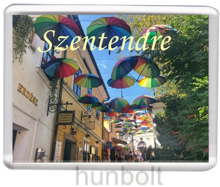 Szentendre- Színes esernyők hűtőmágnes (műanyag keretes) Kép mérete: 45x60 mm, a műanyag keret mérete 53x67 mm Jó minőségű hűtőmágnes kapható, amely tökéletes ajándékötletnek, vagy meglepetésnek is. Kiválóan megfelel konyhája díszeként akár a hűtője, vagy más egyéb fém tárgyak szebbé tételére, melyekre a mágnes feltapad. Műanyag keretes. Mérete: 53x67 cm.