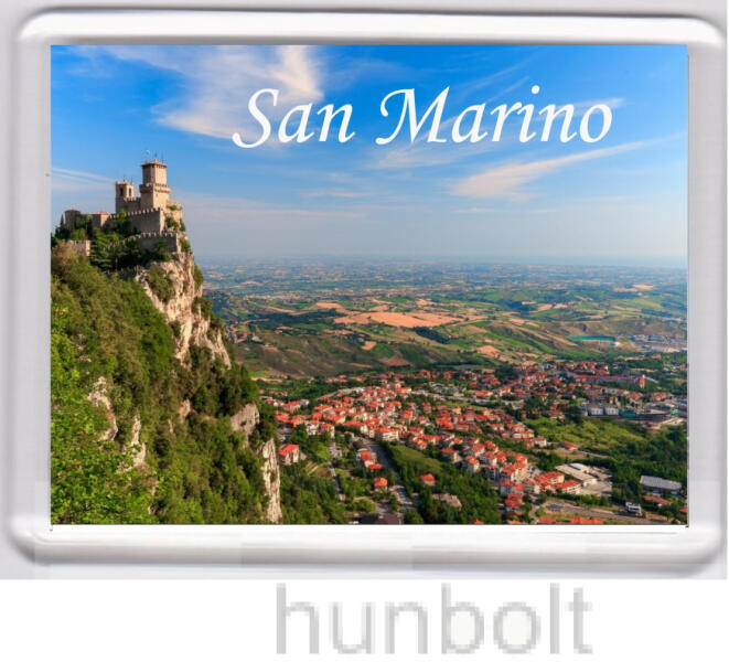 San Marino hűtőmágnes (műanyag keretes) A kép mérete: 45x60 mm, a műanyag keret mérete 53x67 mm Jó minőségű San Marino hűtőmágnes kapható, amely tökéletes ajándék- ötlet nek, vagy meglepetésnek is. Kiválóan megfelel konyhája díszeként, akár a hűtője vagy más egyéb fém tárgyak szebbé tételére, melyekre a mágnes feltapad. Víztiszta műanyag keretes. Külső mé