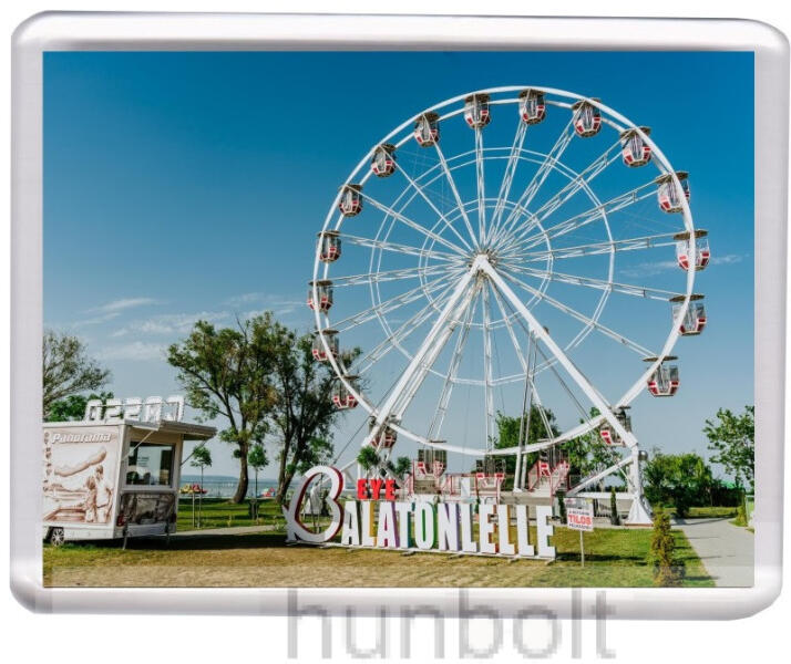 Balatonlelle Óriáskerék hűtőmágnes (műanyag keretes)) Kép mérete: 45x60 mm, a műanyag keret mérete 53x67 mm Jó minőségű hűtőmágnes kapható, amely tökéletes ajándékötlet nek, vagy meglepetésnek is. Kiválóan megfelel konyhája díszeként akár a hűtője, vagy más egyéb fém tárgyak szebbé tételére, melyekre a mágnes feltapad. Műanyag keretes. Mérete: 53x67 cm. A