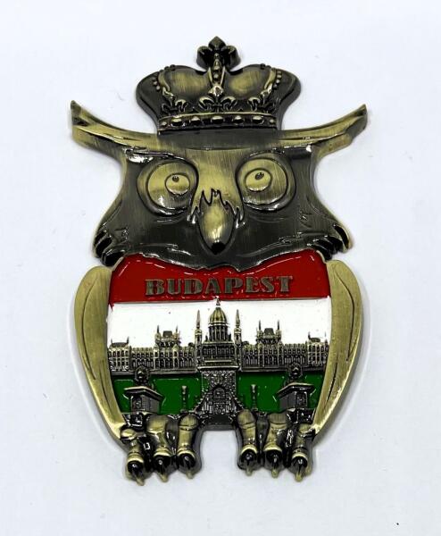 Bagoly formájú, Hungary feliratú hűtőmágnes, Lánchíd és Parlament motívummal. Kedves meglepetés külföldi rokonaink, ismerőseink, barátaink számára. Anyaga: fém Mérete: kb. : 6 x 5,5 cm