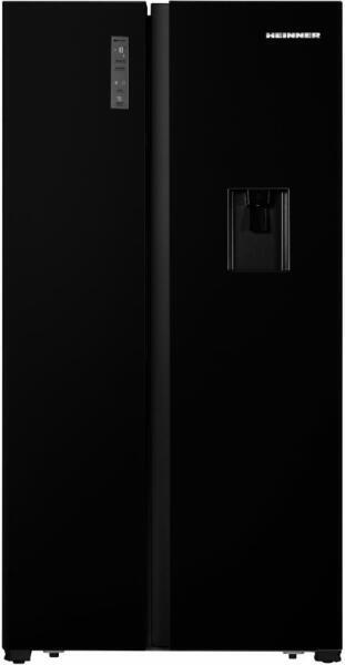 Heinner HSBS-HS519NFBKWDE++ Side by side hűtőszekrény, 519 l, Full No Frost, E energiaosztály, vízadagoló, Display touch, Nyitott ajtó riasztás, M 1786 cm, Fekete Részletek:Fagyás: Full No Frost;Multi Air-Flow rendszer;Energiaosztály: E;Inverteres kompresszor;Vízadagoló;LED kijelző érintésvezérléssel;Teljes kapacitás: 519 l;Hűtőszekrény kapacitása: 334L;Fagyasztó kapacitás