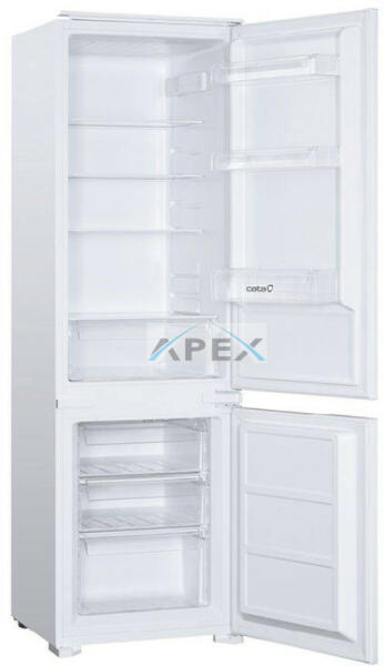 CATA CI-54177 ST/D 177 cm magas b eépíthető hűtőszekrény 249 literes űrtartalom, automata leolvasztás alulfagyasztós kivitel, E energiaosztály 54 cm széles, 177 cm magas, automata leolvasztás, 249 literes űrtartalom, 179 literes normál hűtőrész, 70 literes fagyasztó, állítható hőmérséklet, gyorsfagyasztás, 3 db biztonsági üvegpolc, 1 db zöldségtartó fiók, megfordíth
