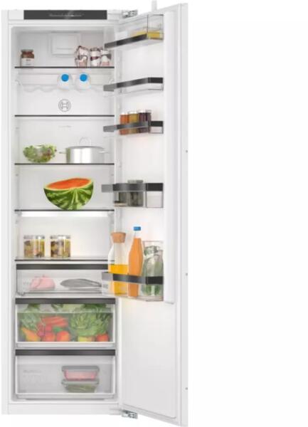 KIR81SDD0, Beépíthető hűtőkészülék Beépíthető hűtőkészülék Könnyen beszerelhető zsanér típusa: lapos zsanér, SoftClose csillapított ajtózáródás Energia takarékosság és teljesítmény Energiaha tékonysági osztály: D Teljes űrtartalom: 310 l Nettó hűtőtérfogat: 310 l Éves energiafogyasztás (kWh/év): 91 Zajszint: 34 dB Design LED világítás a hűtőtérben Ko
