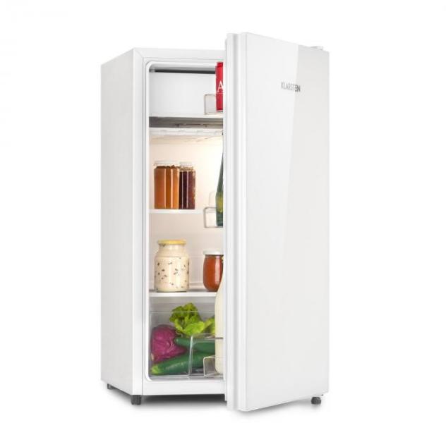 A Klarstein Luminance Frost hűtőszekrény fehér üvegajtajával csúcsminőségű eleganciát hoz a konyhájába. Nem csak kinézetével varázsolja el, de elég tárolóhelyet is kínál az egytagú- és kisebb háztartások számára. A Luminance Frost hűtőszekrény kevés helyet foglal, belül viszont elegendő helyet kínál: a 91 liter belső kapacitásnak köszönhetően mindenféle ét