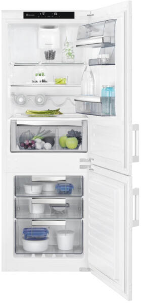 Ez a hatékony beépíthető hűtő-fagyasztószekrény azonnali visszajelzést ad a beállításokról a digitális kezelőpanelen. Teljes szélességű fiók hosszú és szokatlan alakú zöldségekhez. A DynamicAir gondoskodik arról, hogy a hűtőszekrény hőmérséklete állandó maradjon. Biztosítja a hideg levegő keringését a belső térben. A TwinTech® No Frost hűtő-fagyasztó komb