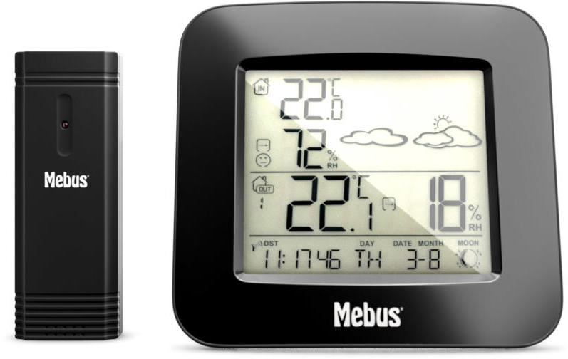 Meteorológiai állomás nagy színes, háttérvilágítású LCD-kijelzővel. Belső hőmérséklet mérése: -9,9 °C-tól +50 °C-ig. Kültéri hőmérséklet mérése: -40 °C és +70 °C között. Belső és kültéri páratartalom mérése: 20–95%. Légköri nyomásmérés: 600 hPa/mb – 1100 hPa/mb. Memórizálja a min. és max. elért hőmérsékleti és páratartalmi értékeket. Figye