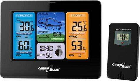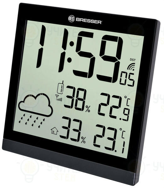 A beltéri és a kültéri hőmérsékletet is leolvashatja °C-ban vagy °F-ben. A beépített barométer érzékeli a légköri nyomás változásait, és jelzi az időjárás alakulását a következő 12-24 órában. A meteorológiai állomás holdfázis-jelzővel és naptárral is rendelkezik, egészen 2099-ig, dátum- és napkijelzéssel. Az időjárás állomás automatikusan a legpontosabb