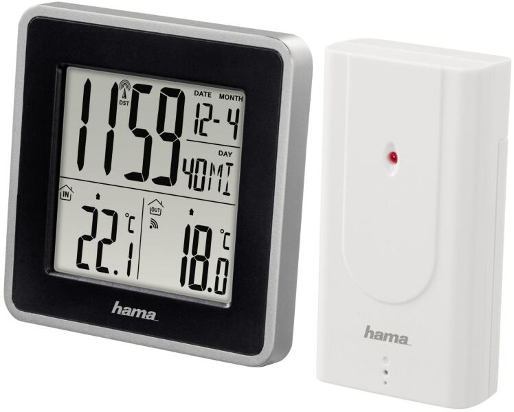 Hama 186301 EWS-INTRO időjárás állomás DCF funkcióval ellátott óra, amely rádiófrekvencia segítségével automatikusan beállítja a pontos időt. Két ébresztési idő programozható, ideális, ha két személy különböző időpontban kel fel. Az időzóna manuálisan is beállítható, ha a DCF-idő eltér az időzóna idejétől. Időjárás állomás modern, kompakt kivitelben Ki