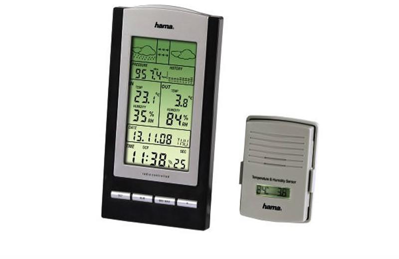 Gyártó: Hama Modell: EWS-800 Tulajdonságok: Két részes időjárás-jelző állomás és rádióvezérelt pontos idő kijelzés Kültéri egység kijelzővel, RF kacsolattal, 100 m-es hatósugárral Funkciók Belső hőmérséklet 0-tól +60 fokig, választható Celsius és Fahrenheit Külső hőmérséklet -40-tól +65 fokig Belső páratartalom 1-99 % Külső páratartalom 20-95% Memória a