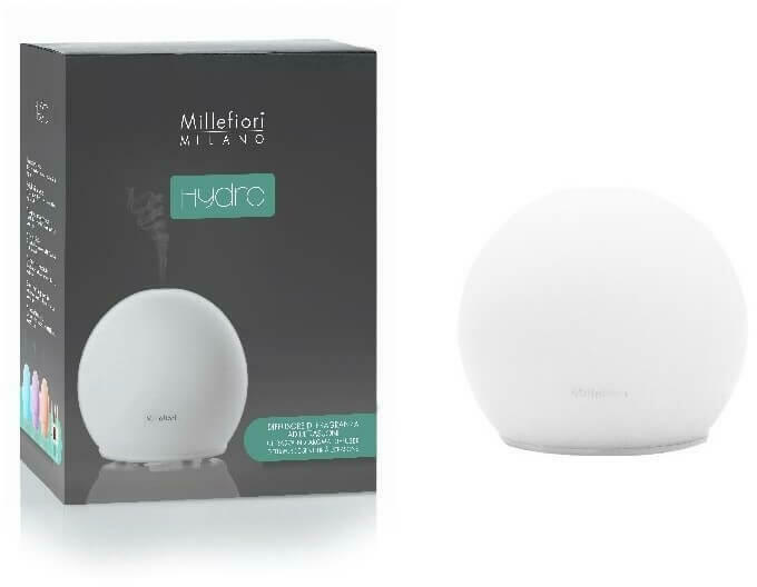 A Hydro ultrahangos diffúzort Millefiori Natural illatos olajokkal lehet használni. Elég csak néhány csepp a vízbe, és a gyors párolgásnak köszönhetően pillanatok alatt illatossá teszi otthonát, és párásítja a levegőt. A diffúzor teljesen csendesen működik, és a beállításoknak megfelelően világít.