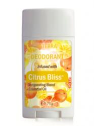 Doterra ;Citrus Bliss Dezodor Elsődleges előnyök: Vadnarancshéjból, citromhéjból, grépfrúthéjból, zöldcitromhéjból, mandarinhéjból, tangerinhéjból, klementinhéjból és bergamotthéjból kinyert CPTG minősítésű esszenciális olajokkal készül. A tápiókakeményítő felszívja a hónalji nedvességet, így egész napon át segít a friss és száraz érzet megőrzésében.