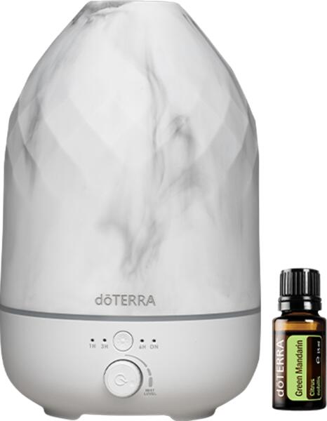 dōTERRA Volo párologtató A gyönyörű dōTERRA Volo ultrahangos párologtató ónix- és márványbevonattal kapható – az otthon vagy az iroda bármely helyiségében tökéletesen mutat. A Volónak kézzel, műgyantából készült kőteteje van egyedi gyémántmintával, és választható fénybeállításai vannak: fény nélküli működés, meleg és élénksárga fény. Ez az egyedi p